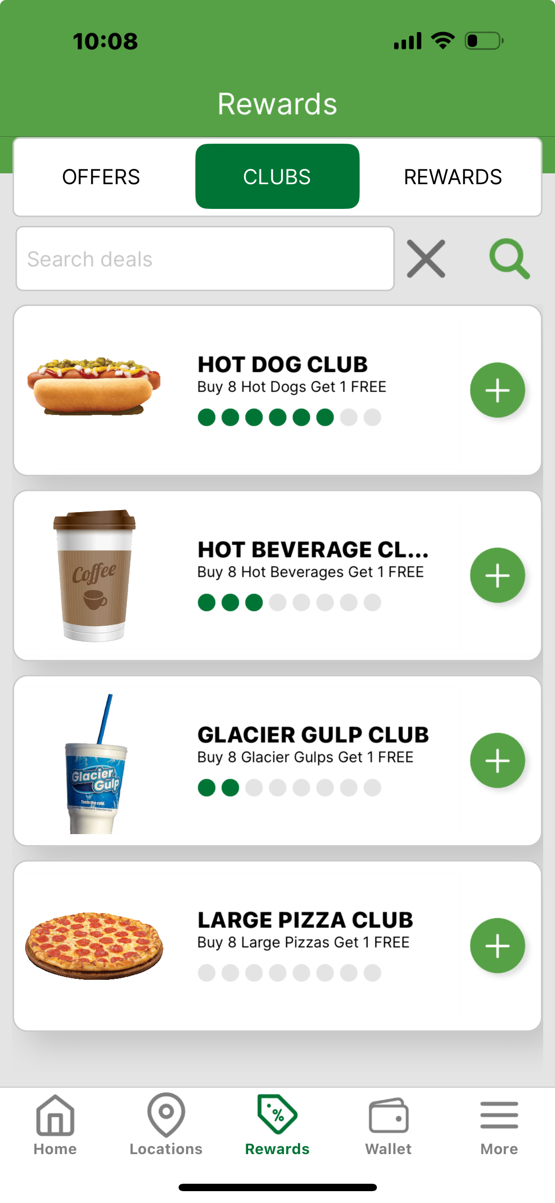 We have 4 Bonus Buy Clubs – Coffee, Hot Dogs, Pizzas and Glacier Gulps. When Buy Any 8 of Each Category you’ll Get 1 Free (For example: Buy Any 8 Glacier Gulps and Get 1 Free.)